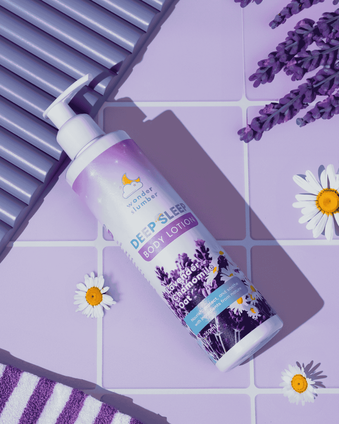 A lightweight, non-sticky lotion that cares for your skin. Enriched with natural plant oils, the Deep Sleep Body Lotion brightens and protects with Niacinamide while soothing your skin with oat. This luxurious formula also imparts the calming aromas of pure, natural Lavender and Chamomile as you nourish your skin throughout the night.