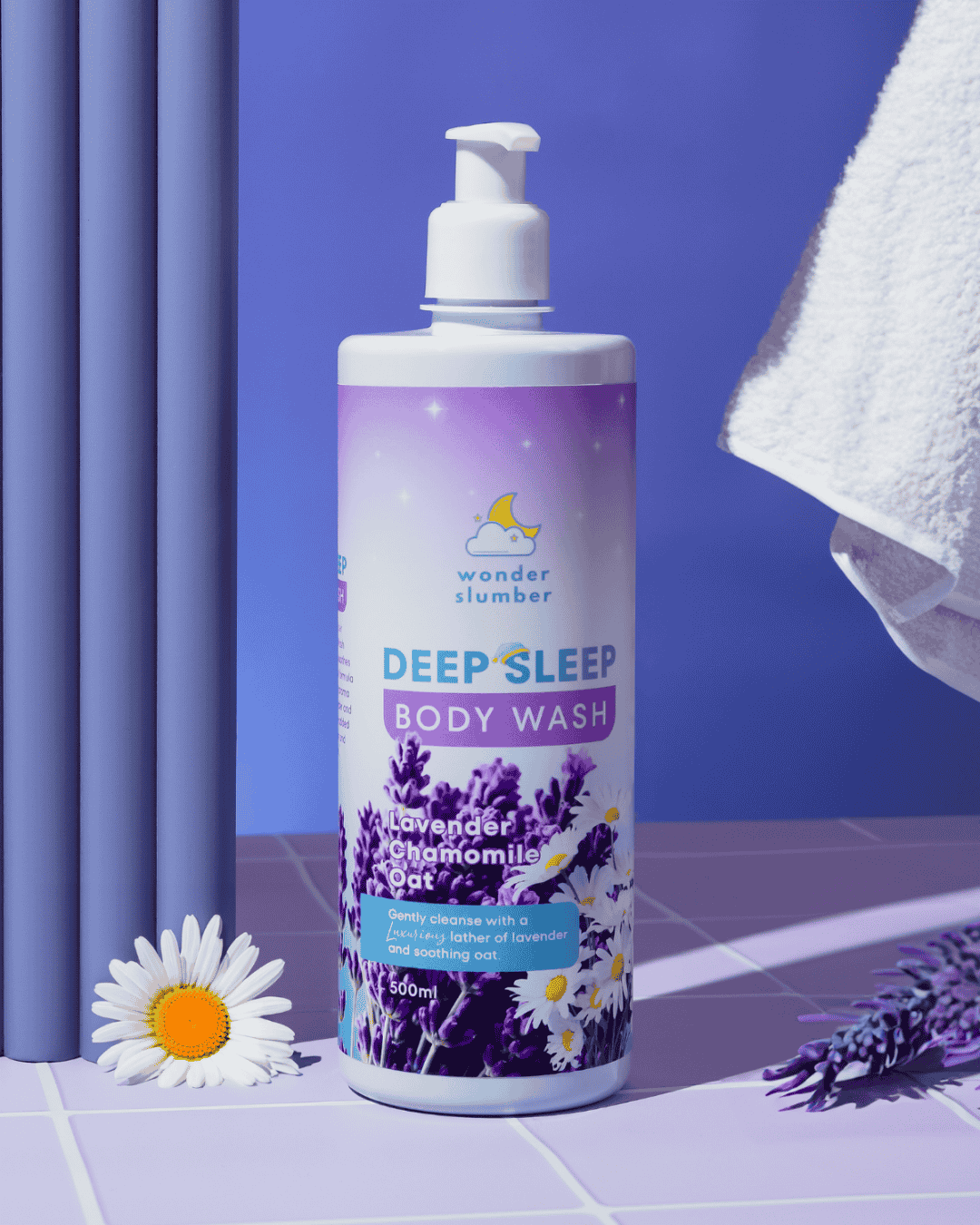The Wonder Slumber Deep Sleep Body Wash gently cleanses as it soothes with oat. This luxurious formula imparts the calming aroma of pure, natural Lavender and Chamomile, with the added benefit of hydration and moisturization.